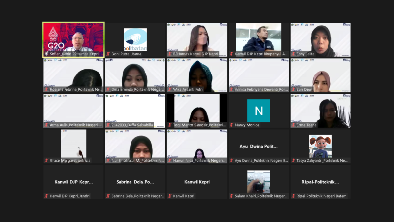 Pembekalan dilakukan secara virtual menggunakan aplikasi zoom. Pembekalan dihadiri Jendir S. Saragih penyuluh pajak ahli muda, Jendir S Saragih dan Pembinging penyuluh dari Dirjen Pajak Wilayah Provinsi Kepulauan Riau, Asih Widhi Tresnadi.