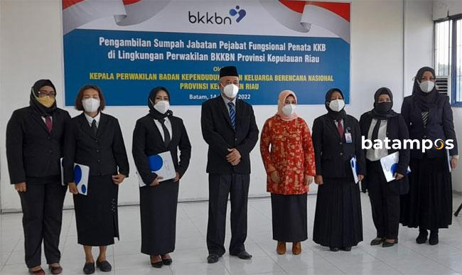 batampos – Enam pegawai Badan Kependudukan dan Keluarga Berencana Nasional (BKKBN) Provinsi Kepri dilantik sebagai pejabat fungsional penata KKB, Jumat (14/1/2022).