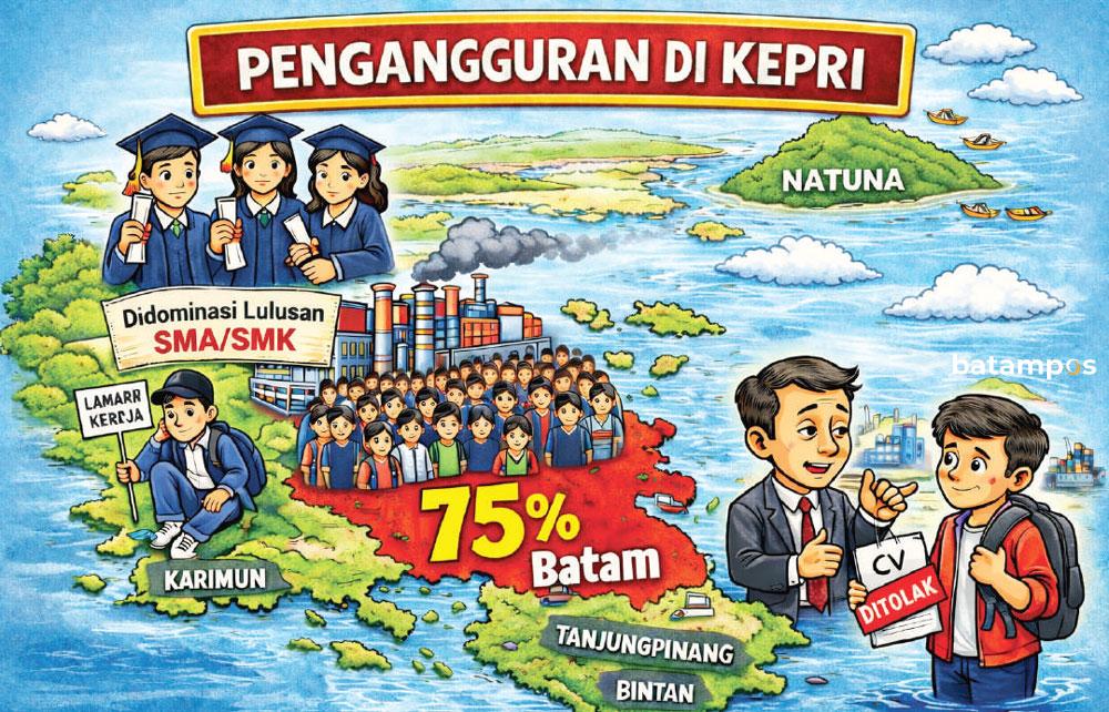 batampos – Alarm pengangguran di Kepri belum padam. Sebanyak 75 ribu orang masih tanpa kerja, dengan 75 persen terkonsentrasi di Batam dan didominasi usia produktif.