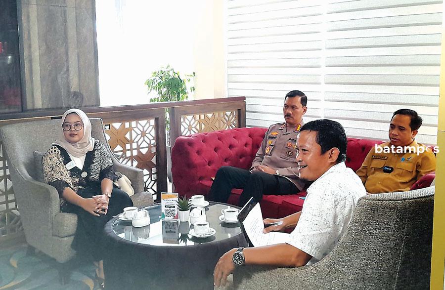 Host Podcast Lipsus Batam Pos, Muhammad Nur, bersama Kabid Humas Polda Kepri, Kombes Pol Zahwani Pandra Arsyad; Kepala BPOM Batam-Kepri, Musthofa Anwari; dan perwakilan dari Wardah Erna Kristiana membahas bahaya kosmetik ilegal, di Hotel Baverly, Lubukbaja, Selasa (15/8).
