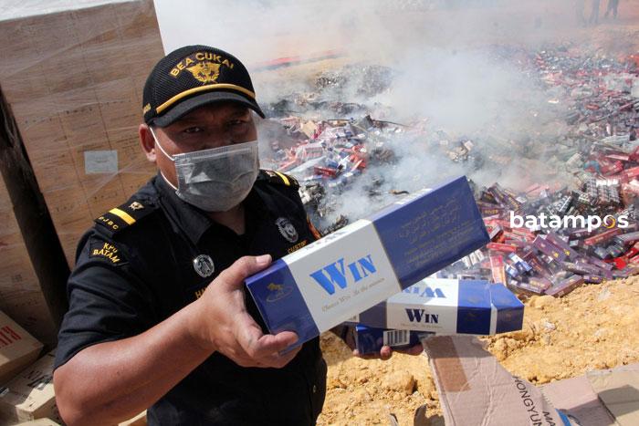 “Dengan total barang sitaan mencapai 3.8 juta batang. Kemudian penyelundupan minuman alkohol dengan barang bukti mencapai 700 liter,” ujarnya.