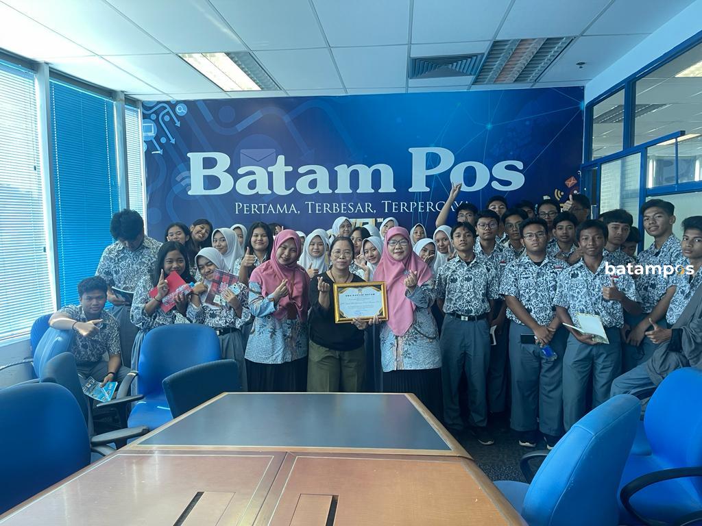batampos – Belajar jurnalisme media massa, sekitar 40-an siswa-siswi SMA Kartini berkunjung ke dapur redaksi Batam Pos pagi tadi (26/10). Kunjungan didampingi 2 guru pembimbing, Bu Ani dan Bu Tammara.