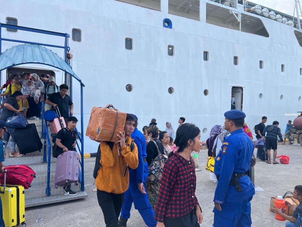 batampos – Satuan Polisi Perairan dan Udara (Sat Polairud) Polresta Barelang melakukan pengamanan di Pelabuhan Bintang 99 Batu Ampar. Pengamanan ini ditujukan untuk ribuan penumpang KM Kelud.