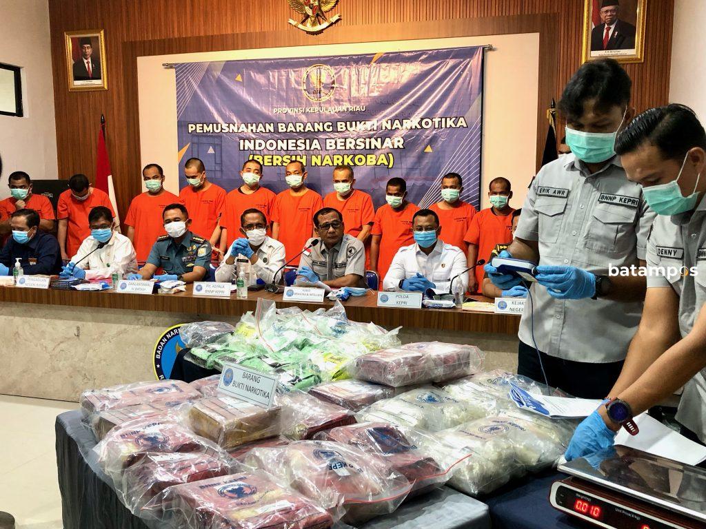 “Dari sekian barang bukti narkotika dan yang kami musnahkan dengan 11 tersangka yang diamankan itu diperoleh para tersangka dari negara tetangga,” kata Kabid Berantas BNNP Kepri, Kombes Pol Bubung Pramiadi, Senin(13/5).