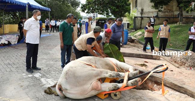 Disebutkan, pembagian daging hewan qurban akan diberikan kepada masyarakat dan tenaga outsourching BP Batam.