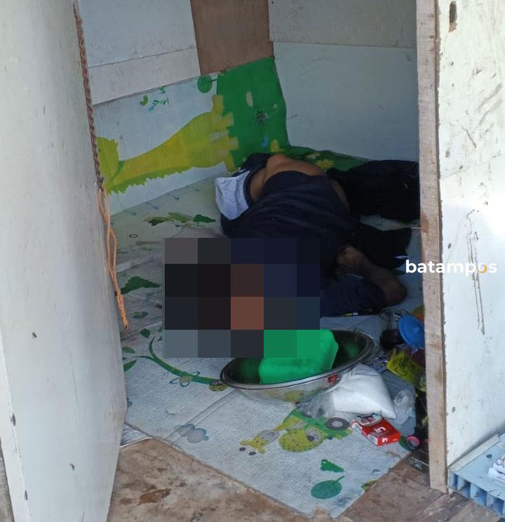 Jasad Budi saat ditemukan di dalam pondok di area perkebunan di belakang Mitra Raya. Foto: Istimewa untuk batam Pos