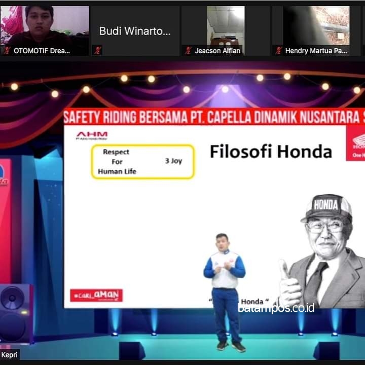 batampos.co.id – Tim Safety Riding Capella Honda menggelar webinar terkait pentingnya cara berkendara atau tata tertib saat rolling touring yang diikuti anggota komunitas motor Honda yang bernaung di bawah OneHeart Community.