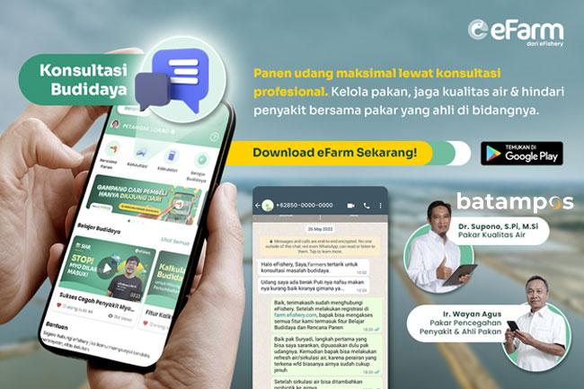 Unduh segera Aplikasi Tambak Udang eFarm. Lakukan registrasi untuk berkonsultasi sekaligus mengakhiri permasalahan proses menambak udang Anda yang selama ini belum terselesaikan.(*/adv)