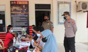 Kapolsek Sagulung Iptu M. Darma Ardiyaniki memantau pelaksanaan vaksin di Mapolsek Sagulung, beberapa waktu lalu