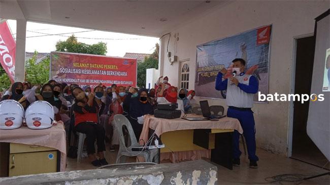 Safety Riding PT. Capella Dinamik Nusantara, Christofer Valentino, saat memberikan materi terkait keselamatan berkendara kepada ibu-ibu di Balai Pertemuan Perumahan Taman Raya. Foto: Honda untuk Batam Pos
