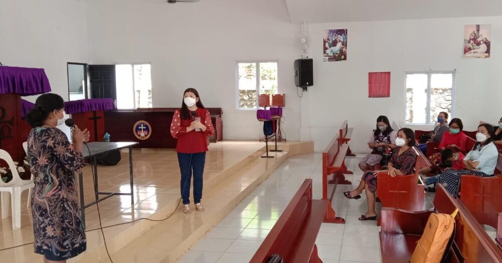 Mewakili Gereja GBKP, Pendeta Herdiyana br Sembiring, didampingi Rakutta Tarigan, mengucapkan terimakasih atas konseling singkat yang diberikan RS Awalbros Batam melalui psikolog Maryana M.Psi.