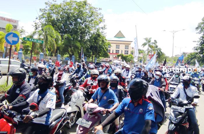 Demo buruh Batam saat menolak UMK 2022 yang ditandatangani Gubkepri