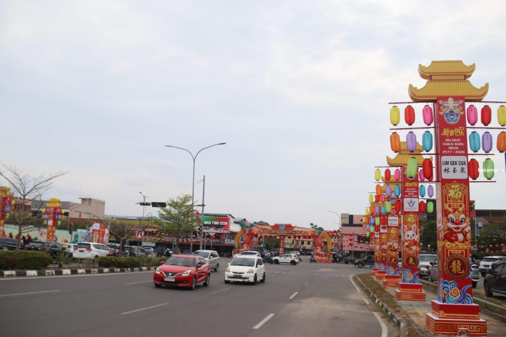 Menjelang perayaan Imlek kawasan Simpang Martabak Har Nagoya terlihat semarak dengan lampion dan ornamen ornamen Imlek, Jumat (13/2). F.Cecep Mulyana/Batam Pos