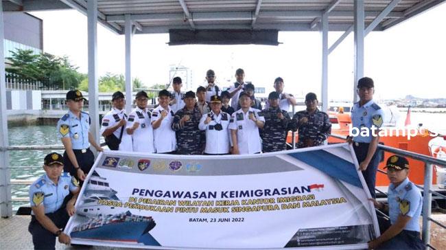 Kantor Imigrasi Kelas I Khusus TPI Batam melakukan operasi gabungan dengan instansi terkait. Operasi gabungan ini mengangkat tema Pengawasan Keimigrasian di Perairan Wilayah Kerja Kantor Imigrasi Pasca Pembukaan Pintu Masuk Singapura dan Malaysia. Foto: Imigrasi Batam untuk Batam Pos
