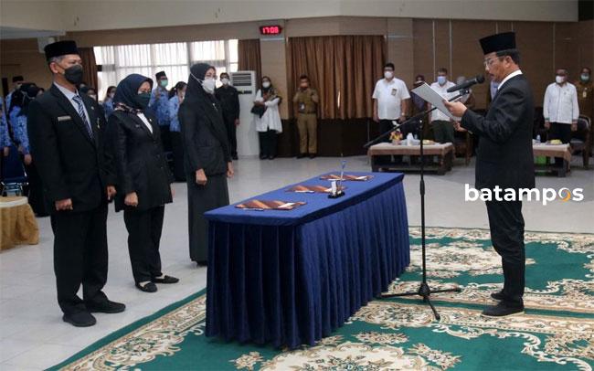 Wali Kota Batam, Muhammad Rudi melantik tiga kepala Organisasi Perangkat Daerah (OPD) baru. Foto: Diskominfo Kota Batam.