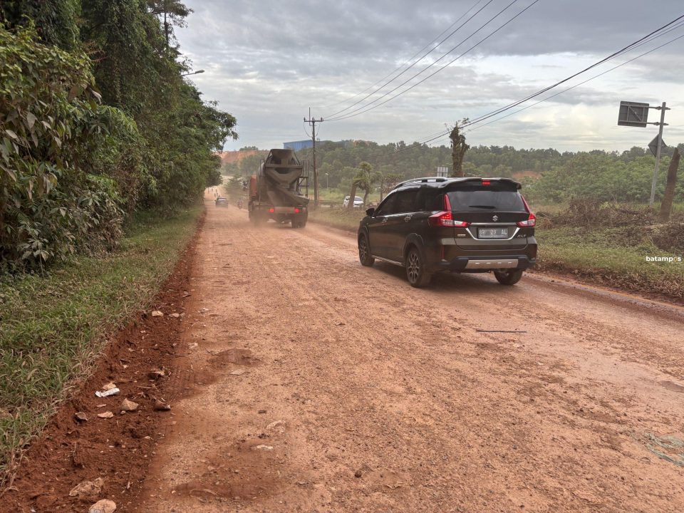 Pantauan Batam Pos di lokasi, Rabu (26/11), jalan tanah merah sepanjang hampir satu kilometer itu tampak dipenuhi tanah tebal. Setiap kendaraan berat yang melintas, terutama truk pengangkut sampah, membuat debu berwarna cokelat kemerahan berterbangan hingga mengurangi jarak pandang secara drastis.