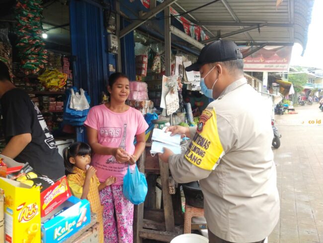 Personel Polsek Bulang memberikan masker kepada salah seorang warga yang tidak menggunakan masker. Foto: Humas Polresta Barelang