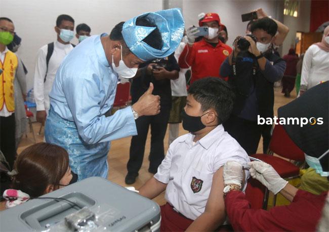 Gubernur Provinsi Kepri, Ansar Ahmad, melauching vaksinasi bagi anak usia 6 hingga 11 tahun se-Provinsi Kepri di SMA Maitreya, Jumat (19/12/2021).
