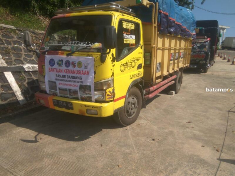 Truk yang membawa bantuan bencana tertahan di Pelabuhan Roro Telaga Punggur. F untuk Batam Pos