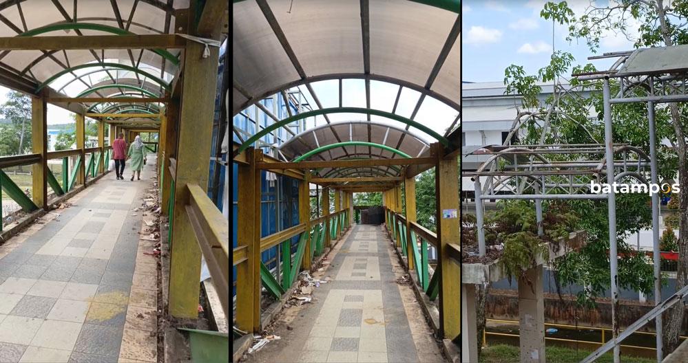 batampos – Jembatan Penyeberangan Orang (JPO) di kawasan Mukakuning, Kota Batam, kini dalam kondisi memprihatinkan. Banyak bagian jembatan yang mengalami kerusakan, seperti atap yang bolong dan penutup bawah yang copot akibat tertabrak truk bermuatan tinggi. Kondisi ini membuat JPO tersebut menjadi tidak nyaman dan berbahaya bagi pejalan kaki yang melintas.