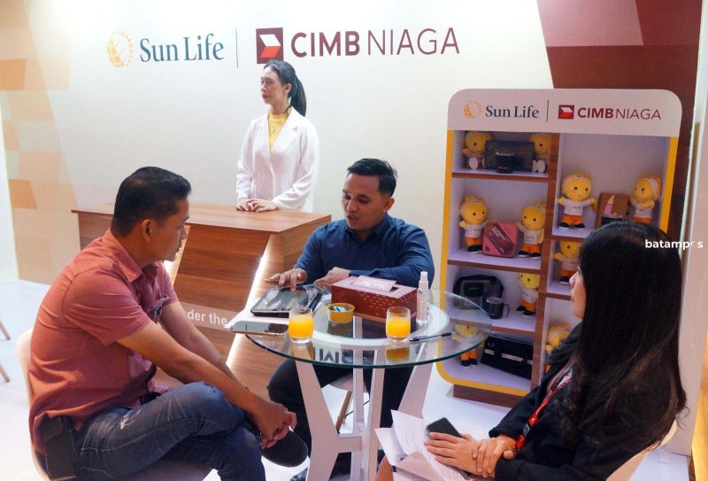 Pegawai CIMB Niaga memberikan informasi dan menjelaskan kepada pengunjung yang hadir di Wealt VXpo di Hotel Mariot Harbour Bay, Batuampar, Batam, Kepri, Kamis (7/9).