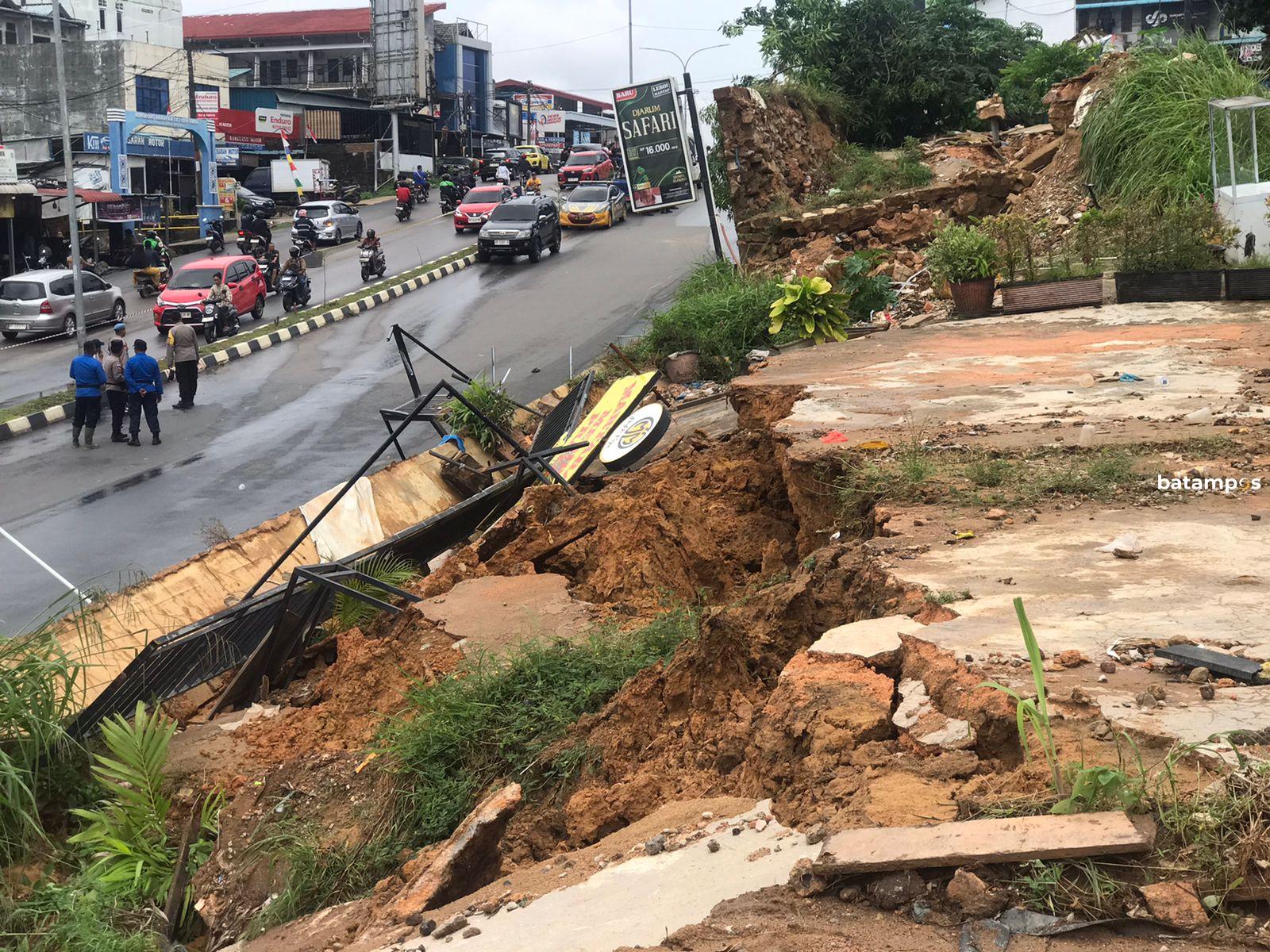batampos – Longsor terjadi di kawasan Bengkong Harapan, tepatnya dekat Simpang Bengkong Harapan, Senin (11/8) sekitar pukul 10.00 WIB. Hujan deras disertai angin kencang membuat tanah dari dataran tinggi di sekitar lokasi ambruk ke tepi jalan raya.