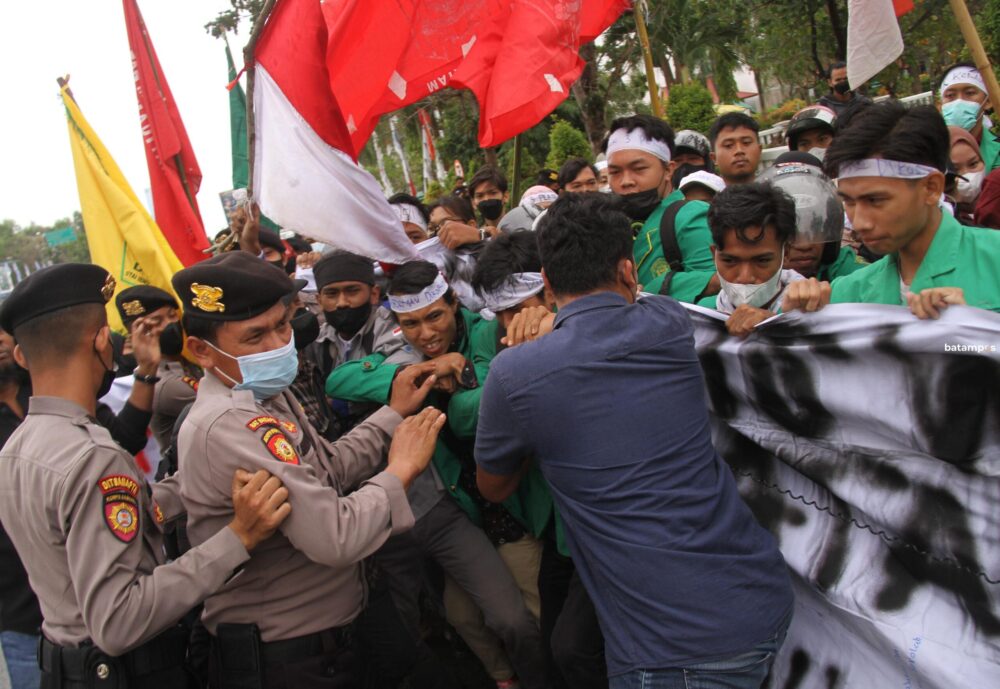 Aksi saling dorong sempat terjadi saat para mahasiswa memaksa untuk masuk ke halaman Kantor DPRD Kota Batam dan bertemu Anggota DPRD Batam. Mereka juga sempat terlibat adu mulut.