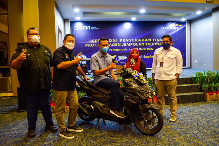 Sebagai salah satu apresiasi pencapaian kinerja kepada Mandiri Agen, Bank Mandiri wilayah Sumatera Utara menggelar seremoni pemberian hadiah program Agen Jempolan berupa 1 unit sepeda motor dan puluhan logam mulia yang dimenangkan oleh Mandiri Agen dari Pematangsiantar, Medan, Pekanbaru, Dumai, Rantau Prapat, dan Batam. Acara dilaksanakan pada tanggal 10 Maret 2022 dan bertempat di Hotel Horizon Pematangsiantar dengan menerapkan standar protokol kesehatan yang telah ditentukan.