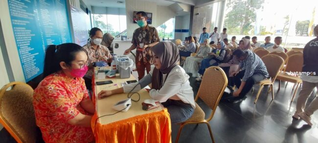 batampos – Masyarakat Kota Batam sangat antusias mengikuti kegiatan donor darah yang digelar Batam Pos di Lantai Dasar Gedung Graha Pena, Batamcenter, Jumat (22/7/2022).