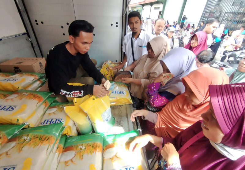 batampos – Warga di Batuaji dan sekitarnya, khususnya kaum ibu-ibu, berbondong-bondong ke lokasi operasi pasar murah yang digelar Pemko Batam Kelurahan Buliang, Kecamatan Batuaji, Senin (1/4) pagi. Sejumlah kebutuhan pokok diserbu ibu-ibu untuk stok selama Ramadhan dan hingga Lebaran nanti.