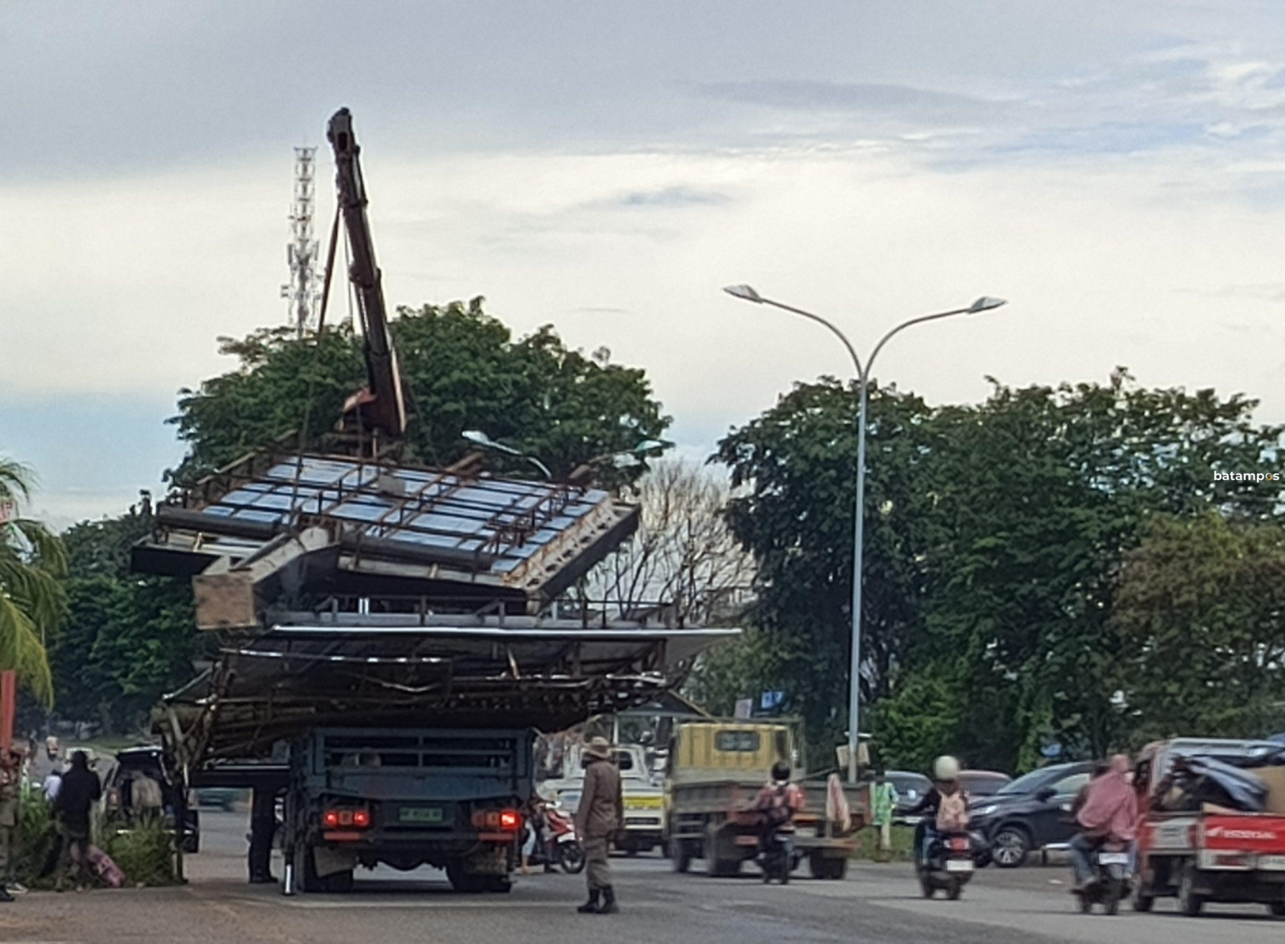 Pantauan Batam Pos di lapangan, penurunan baliho dilakukan menggunakan alat berat. Sebuah baliho berukuran besar di simpang empat Simpang Basecamp dicopot setelah pengikat dan baut-bautnya dilepas. Material reklame kemudian diletakkan di lahan kosong di dekat Perumahan Merlion. Proses berjalan tertib meski sempat menarik perhatian warga.