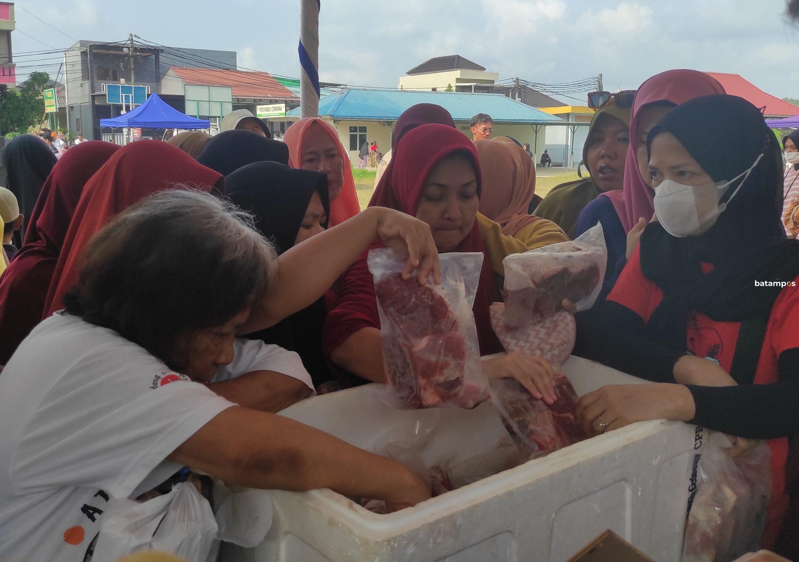 batampos – Sejumlah warga Batamcenter menyerbu daging sapi beku yang dijual di Lapangan Serbaguna Hang Jebat, Cendana Batamcenter, Jumat (5/4). Dimana ada dua jenis daging sapi yang dijual dalam operasi Pasar Murah yang digelar Pemko Batam itu.