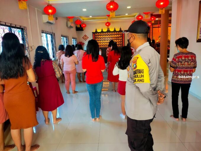 batampos- Jajaran Polsek Bulang melaksanakan pengamanan perayaan Imlek di Vihara Samudra Bhakti, Selasa (1/2). Kegiatan ini untuk memberikan rasa aman dan nyaman kepada masyarakat yang melaksanakan ibadah.