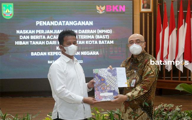 Kepala BKN, Bima Haria Wibisana, mengucapkan terimakasih atas dukungan Pemko Batam. Adapun lahan yang dihibahkan tersebut berada di Nongsa, seluas 2 hektar.