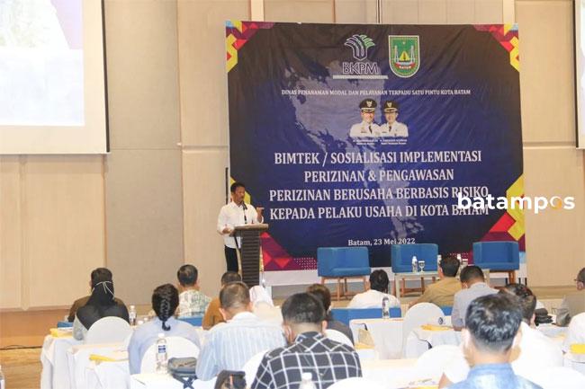 Wali Kota Batam, Muhammad Rudi, saat membuka bimtek/sosialisasi implementasi perizinan dan pengawasan perizinan berbasis risiko kepada pelaku usaha di Kota Batam, Senin (23/5/2022). Foto: Diskominfo Kota Batam untuk Batam Pos