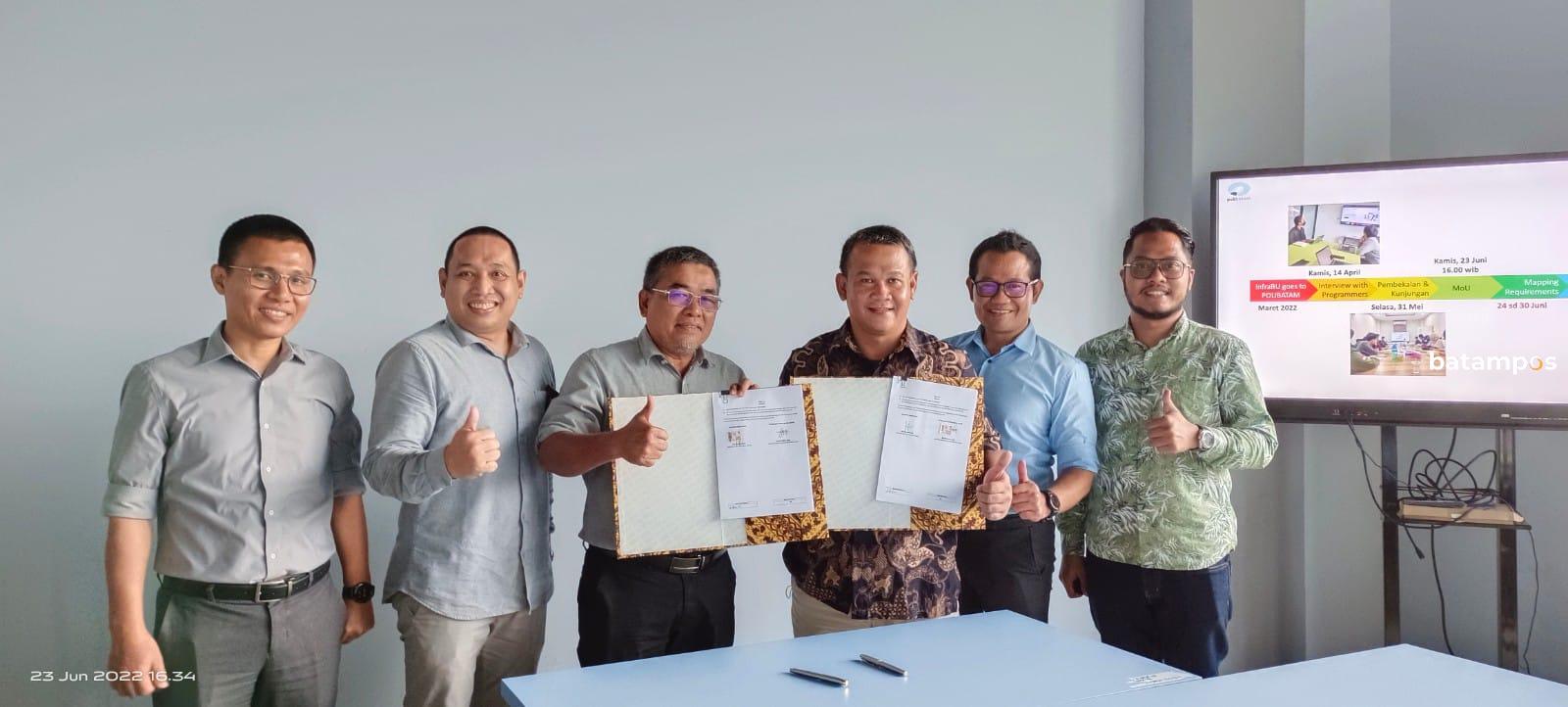 batampos – Direktur Bisnis dan Pengembangan Usaha PT Pelayanan Listrik Nasional (PLN) Batam, Buyung Abdul Jalal dan Direktur Direktur Politeknik Negeri Batam (Polibatam), Uuf Brajawidagda ST MT PhD menandatangani Kerja Sama Digitalisasi Proses Bisnis PT Pelayanan Listrik Nasional (PLN) Batam di lantai 2 Gedung Technopreneur Centre Polibatam, Kamis (23/6/2022).