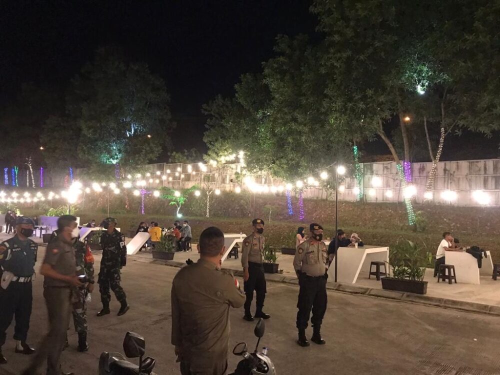 Tim Gabungan menyambangi angkringan untuk memperingatkan protkes ke masyarakat. F.Firdaus untuk Batam Pos