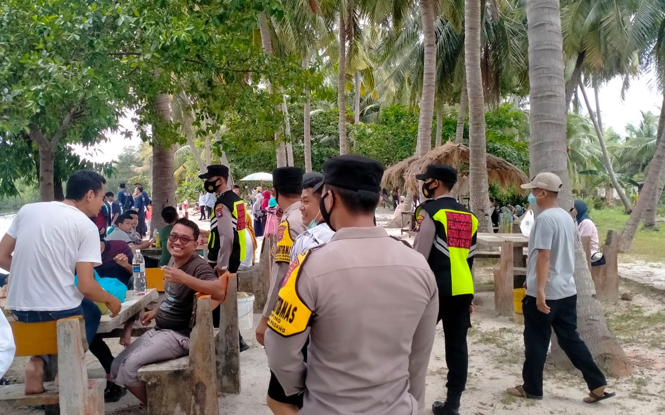 batampos.co.id – Polsek Belakang Padang meninjau penerapan protokol kesehatan (prokes) di tempat wisata, Minggu (28/11/2021).