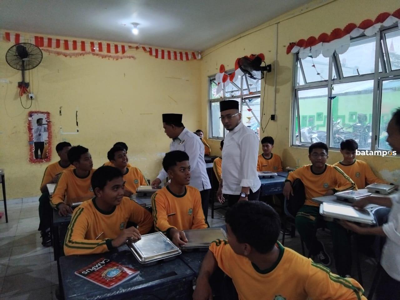 Budi bersama Kepala Seksi Pendidikan Madrasah Kemenag Batam, Andika Setiawan, turun langsung meninjau pelaksanaan di MAN 2 Batam untuk memastikan program berjalan baik.