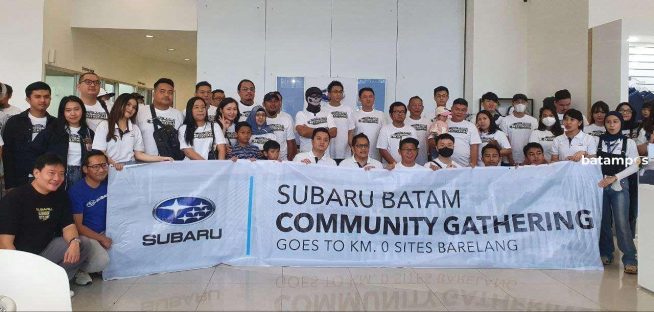 batampos– Sebanyak 35 unit mobil dengan 85 orang konsumen Subaru di Batam memeriahkan Community Gathering goes to KM 0 Site Barelang.