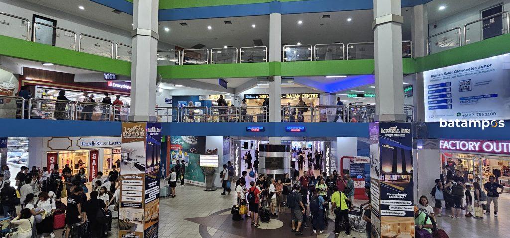 Pantauan di Pelabuhan Feri Internasional Batamcenter terlihat ramai. Dimana ada ribuan penumpang di ruang tunggu menunggu giliran kapal yang hendak berangkat.