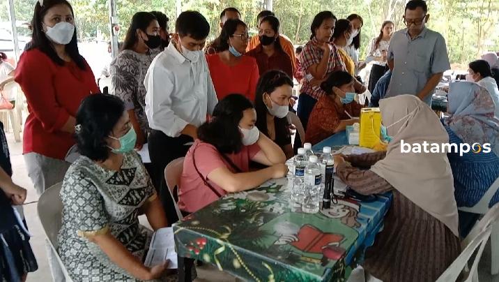 Digawangi dr.Fikra Nurul dan drg.Rahel Florida Sitepu, 6 petugas medis dari Puskesmas Botania dan 3 dari RSUD Batam, turut membantu memeriksa 100 anggota gereja dengan berbagai keluhan.