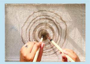 Untuk membuat pola, cukup teteskan atau celupkan kuas sedikit demi sedikit sampai warnanya terbentuk. Tinta yang digunakan adalah tinta sumi. Karena harganya relatif mahal, kamu bisa menggantinya dengan cat akrilik ditambah cairan paint medium.