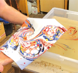 Teknik lukis di atas air merupakan bentuk kuno dari teknik marbling yang saat ini banyak digunakan untuk membuat desain warna pada batu marmer.