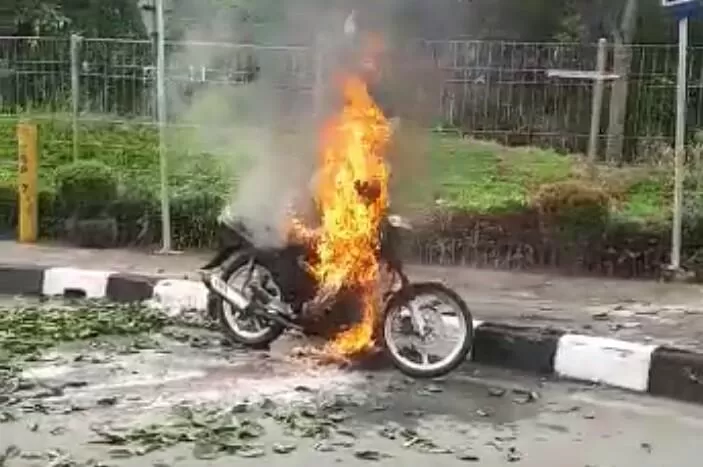 Sepeda motor tersebut diketahui dalam posisi terparkir saat tiba-tiba muncul kobaran api yang membakar seluruh bodi kendaraan. Banyak pengunjung yang panik dan menjauh dari lokasi kebakaran, sementara beberapa lainnya tampak merekam peristiwa itu dengan ponsel mereka.