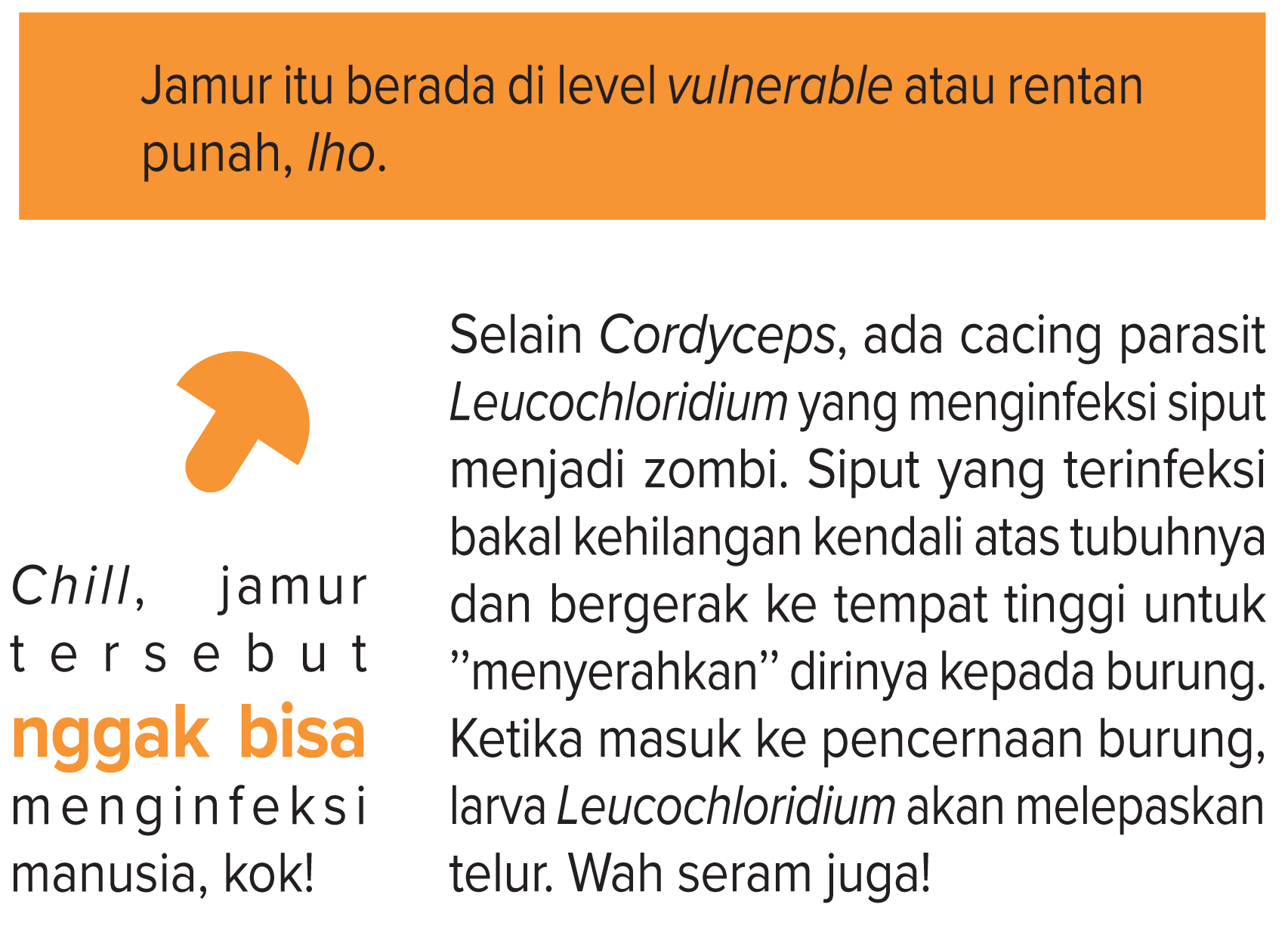 batampos – Pernah membayangkan kalau virus zombi betulan ada? Baru dibayangkan aja sudah seram! Eitss, meski nggak ada virus yang seperti itu, ternyata ada jamur yang bisa menginfeksi serangga hingga menjadi zombi, lho. Yaps! It’s Cordyceps, jamur yang dapat melakukan ’’zombifikasi’’. Let’s know more! (elv/c12/lai)