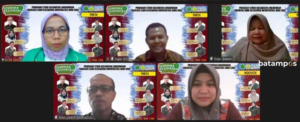 Bertema Peran Tenaga Kesehatan Lingkungan Dalam Pengendalian Penyakit Menular, webinar mengundang dua pemateri dari Fakultas Kesehatan Masyarakat (FKM) Universitas Diponegoro, Dr. Nurjazuli, SKM., M.Kes dan dari KKP Kelas I Batam, Dian Sapta Rahayu P, SKM., MM. Selain dua pemateri dari luar, satu pemateri dari Fakultas Ilmu Kesehatan (FIKes) Universitas Ibnu Sina, Fajar, SKM., M.Kes.