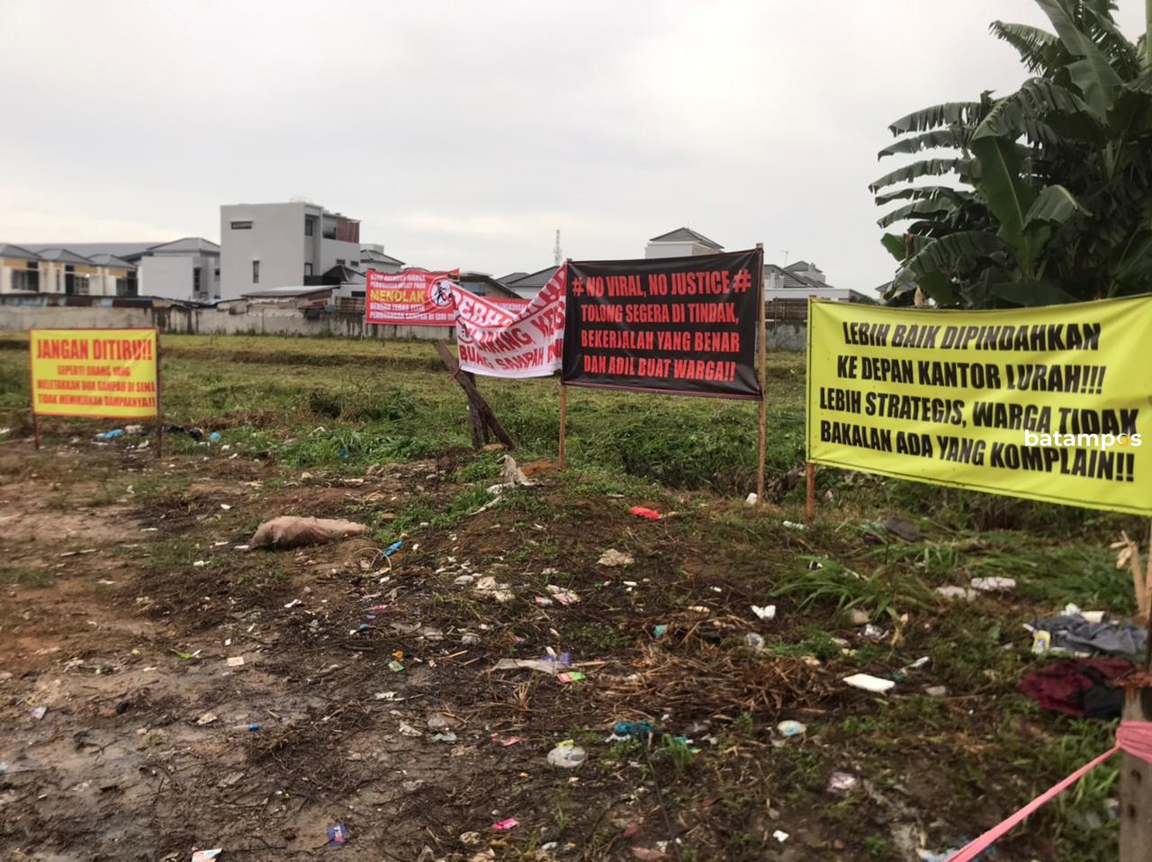 Pantauan Batam Pos, Kamis (13/11) sore, tampak sejumlah spanduk besar terpasang di sekitar lokasi. Salah satunya bertuliskan, “Kami seluruh warga Perumahan Ansley Park menolak dengan tegas titik pembuangan sampah di sini.”