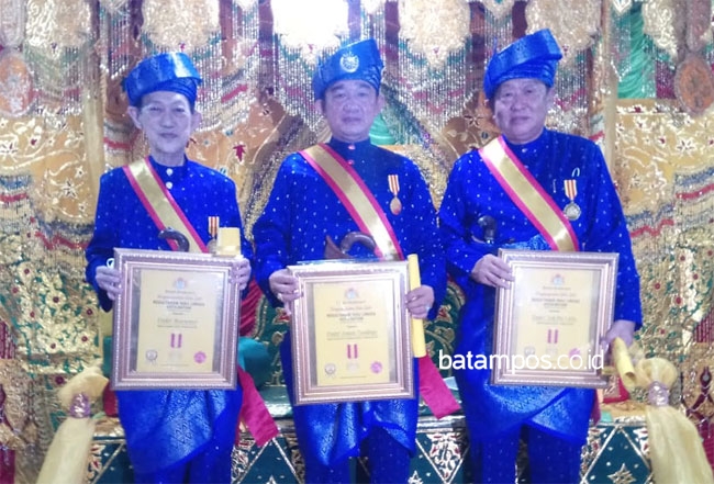 batampos.co.id – Satu kebanggaan bagi masyarakat Tionghoa di Batam. Tiga tokohnya yakni Harsono, Amat Tantoso, dan Abi, dianugerahi gelar Dato oleh Kesultanan Riau Lingga Kota Batam, di Lantai 1 Hotel Golden View, Bengkong Laut, Batam, Sabtu (20/3/2021).