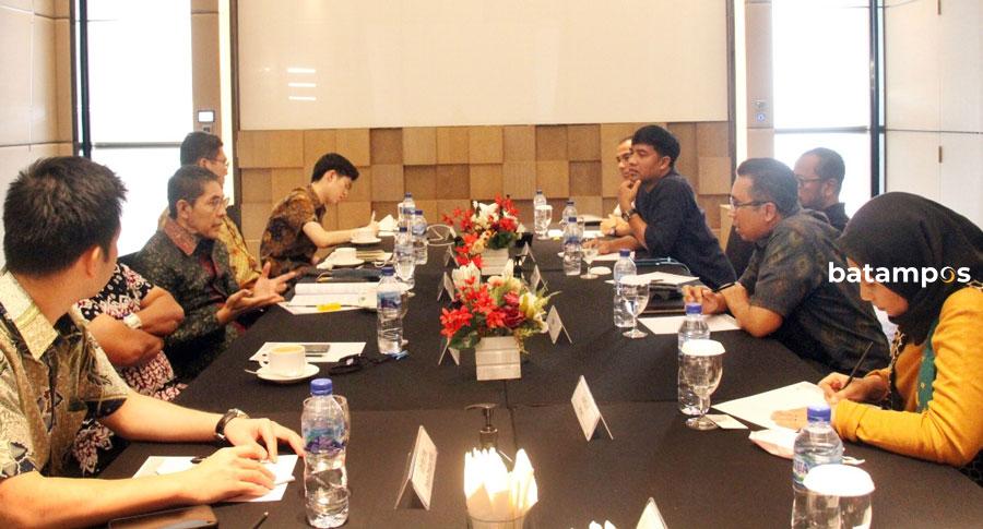 Menteri Kedua Luar Negeri Singapura, Mohamad Maliki Osman, berbincang dengan media di Marriott Harbourbay, Batam, Jumat (19/8/2022). / foto: Cecep Mulyana / Batam Pos